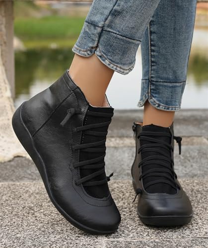 Women's Waterproof Combat Boots Casual Ankle Boots Fashion Round Toe Slip On Elastic Fall Booties Shoes