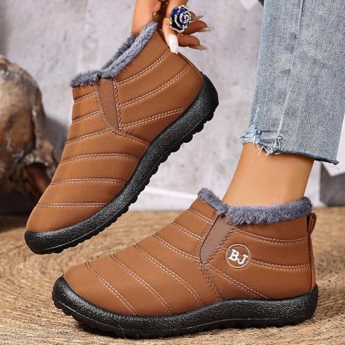 Snow Boots for Women Waterproof with Comfortable Warm Faux Fur Lined Ankle Booties Outdoor Slip On Winter Short Boots