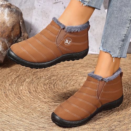Snow Boots for Women Waterproof with Comfortable Warm Faux Fur Lined Ankle Booties Outdoor Slip On Winter Short Boots